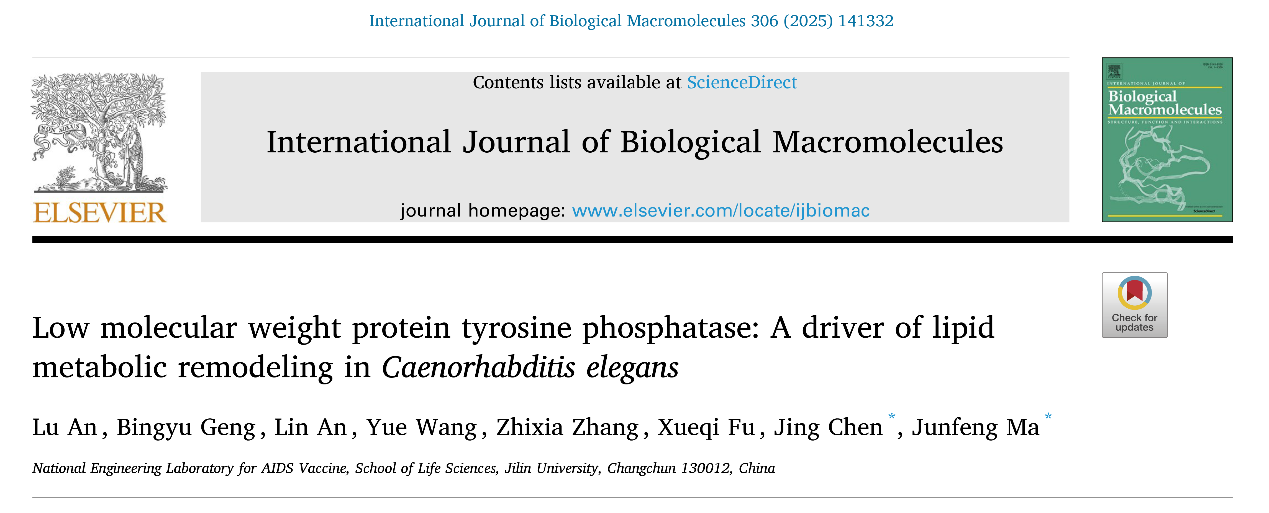 该成果以《Low molecular weight protein tyrosine phosphatase: A driver of lipid metabolic remodeling in Caenorhabditis elegans》为题,发表于国际学术期刊International Journal of Biological Macromolecules。此项研究工作得到了国家自然科学基金、国家重点研发计划以及吉林省科技发展项目的支持。论文的完成单位为糖果派对-糖果派对试玩