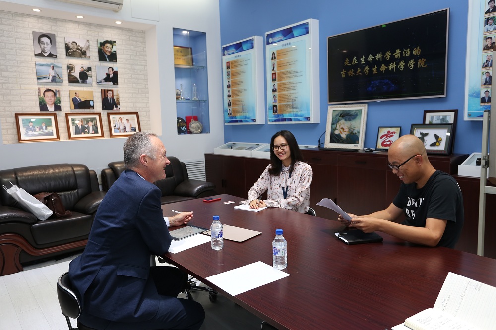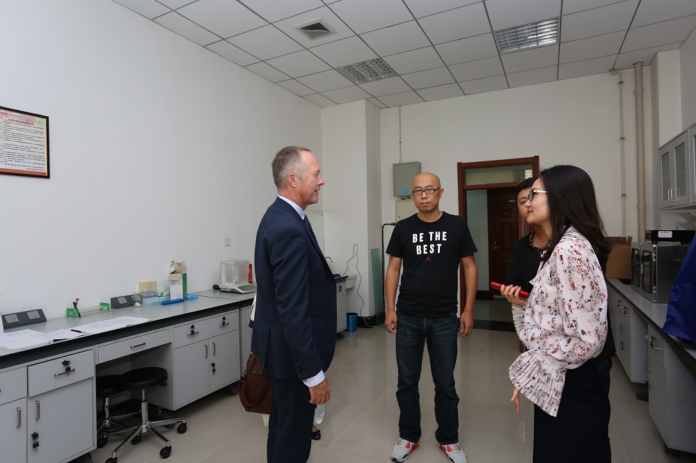 副院长马俊锋首先代表学院欢迎桑普森教授的来访,并对糖果派对 发展情况与学科优势进行了介绍。接下来双方就学生联合培养、合作科研等事宜进行了磋商,深入探讨了双方交流合作的可行性。座谈结束后,副院长马俊锋带领桑普森教授参观了我院公共技术中心,在参观过程中,对仪器的使用等问题进行了交流。