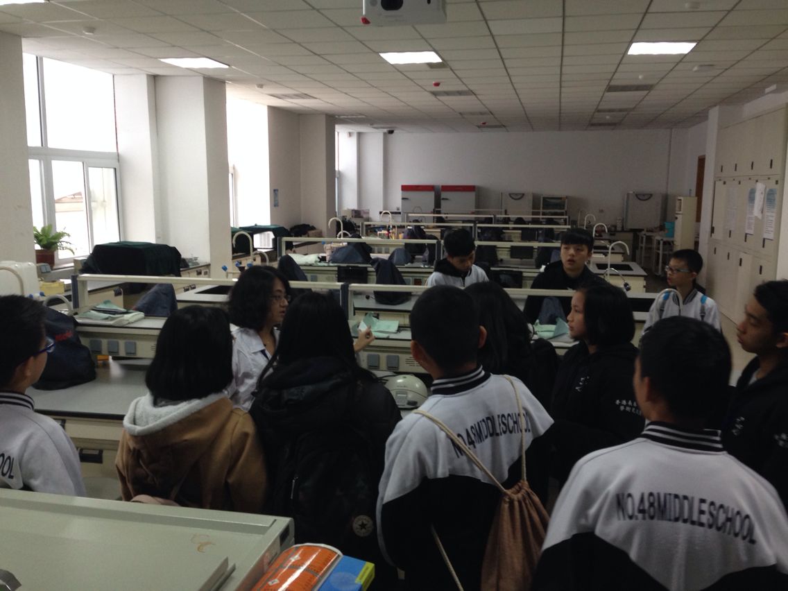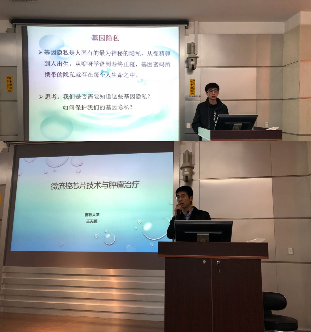 研究生杨洁冰、王天鹏两位同学分别为大家做了题为“人类基因组和基因技术”和“微流控芯片技术与肿瘤治疗”的学术讲座,内容深入浅出、充满趣味,赢得了在场师生的热烈掌声。讲座结束后,在国家级生物实验教学示范中心老师的带领下,来访师生们对实验中心进行了参观,对于中心各种先进的现代化仪器设备,参观的学生们显得兴致勃勃,并与老师们进行了积极互动。参观结束后,来访师生游览了吉林大学中心校园,最后来到校史馆,通过讲解员细心生动的讲解,大家对吉林大学的历史沿革与发展有了进一步的了解。