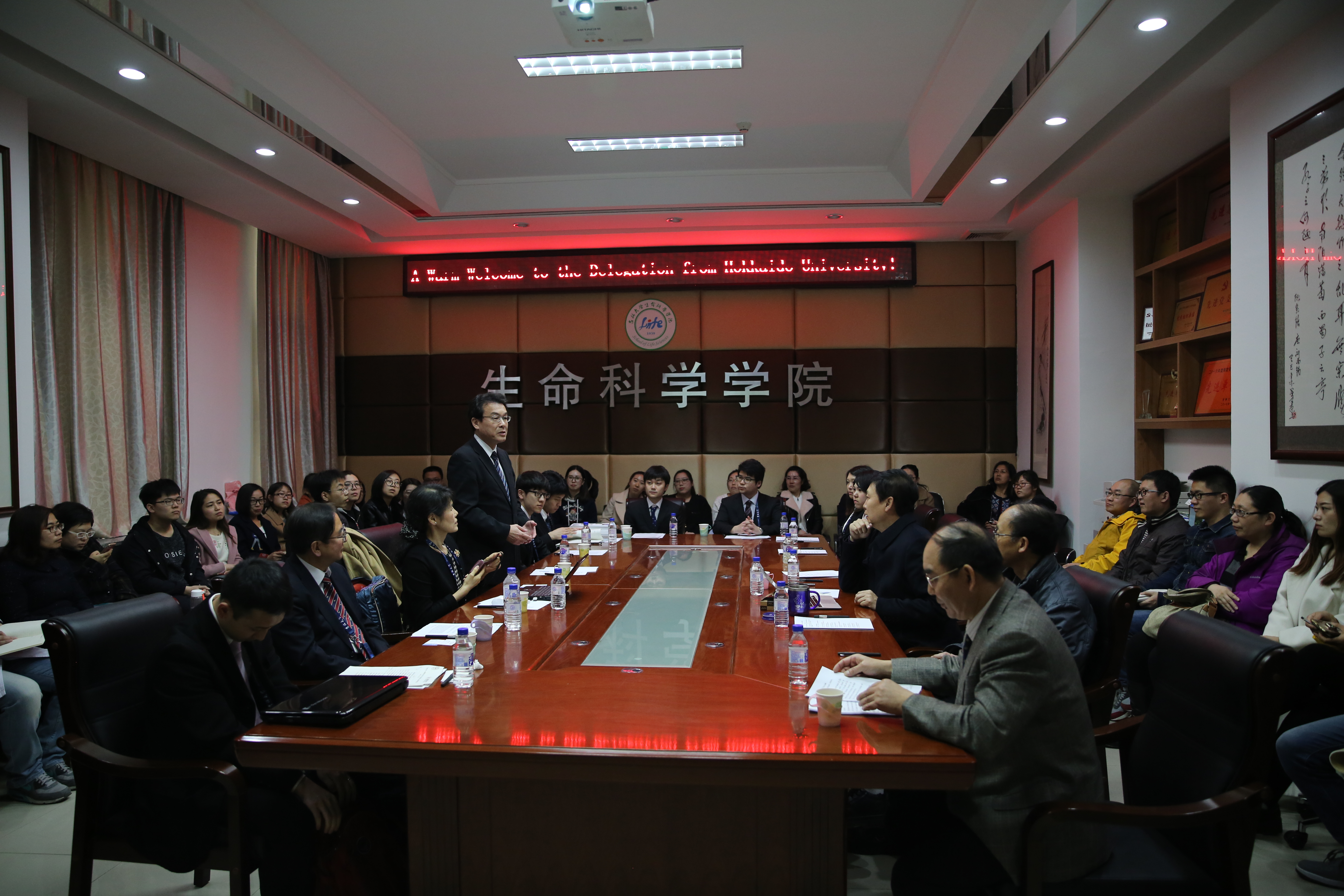 3月27日北海道大学保健科学研究院前院长伊达广行教授一行10人访问我院,并在我院335会议室与糖果派对