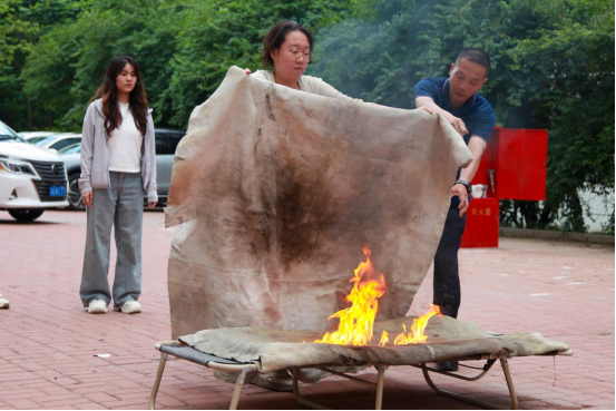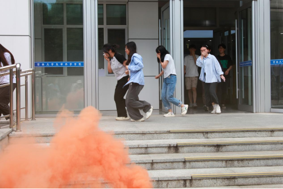 14时整,“火警信号”发出,各楼层迅速组织师生进行疏散,并按照预案进行火灾报警、人员疏散自救、抢救伤员、扑救初级火灾,全体师生在应急疏散中积极配合,听从指挥;各岗位人员各司其职、各尽其责、分工明确、有序地完成了疏散活动。在灭火演练过程中,保卫处消防科科长董立明详细介绍了消防自救面罩、各种类型灭火器、灭火毯和消防栓的使用方法及注意事项,参与师生均能够遵守操作规程正确实施演练活动。