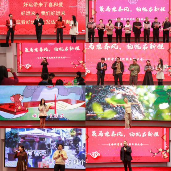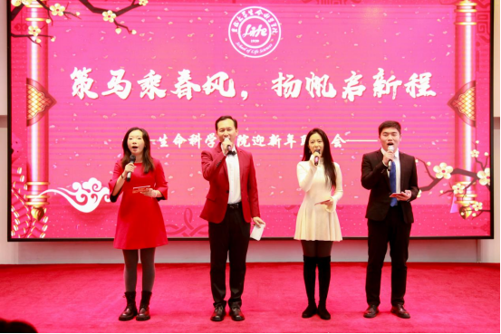 青年教师代表武泽明、朱镜璇以《好运来》欢快喜庆的旋律拉开联欢序幕,瞬间点燃全场气氛,寄托了对新一年的美好祝福;由学院领导班子全体成员带来的诗朗诵《生命之光耀新程》,以铿锵有力的语言、饱满真挚的情感,展现了学院领导集体锐意改革、开拓进取的精神风貌;学院全体行政人员的三句半《奋进生科院,行政勇争先》语言幽默风趣,节奏明快,生动展现了学院行政团队服务师生、保障有力、奋发有为的精神风貌,赢得阵阵笑声与掌声;徐力独唱《这不是遥远的地方》,词意真切,歌声悠扬深情,带来一场听觉盛宴;生物化学与分子生物学系教师邢茗、赵伟和韩璐创意改编经典小品《科研版卖拐》,巧妙融入实验室日常,幽默展现科研生活的苦与乐,引发全场共鸣;新进教职工贾裕杰独唱《New Boy》,青春飞扬的演绎,带领老师们回忆2025年的美好瞬间;孟祥玉独舞《世界赠与我的》,舞姿优美灵动,通过肢体语言表达对生命、对世界的感悟,艺术表现力极强;杨安慧、蔡雪莹二人合唱《拜新年》,欢快的节奏、喜庆的歌词,将联欢会推向高潮,营造出浓浓的年节氛围。随着经典旋律《涛声依旧》悠扬响起,学院党委书记白宇沉稳而深情的歌声回荡在整个会场,这首承载着岁月记忆与真挚情感的歌曲,在他的演绎下,别具一番动人力量。歌声中,既有对过往奋斗岁月的深情回望,也有对深厚情谊的珍视与对未来的温暖期许。
