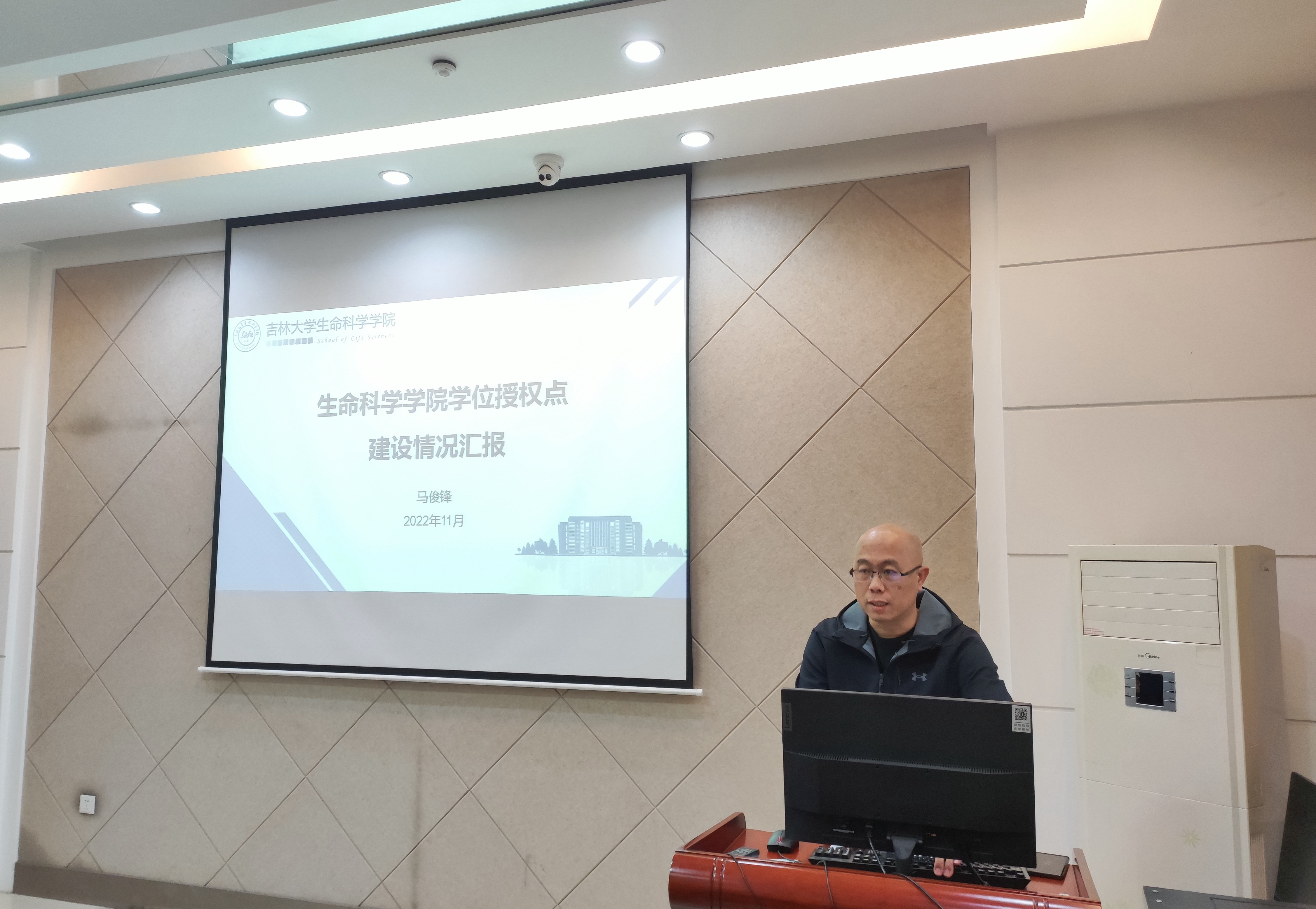 生物学学位分委会主席、学院副院长马俊锋汇报学院学位授权点建设相关情况。他从学院学位授权点的历史沿革、学院“基础学科”与“学科交叉”两条发展脉络入手,全面介绍了糖果派对