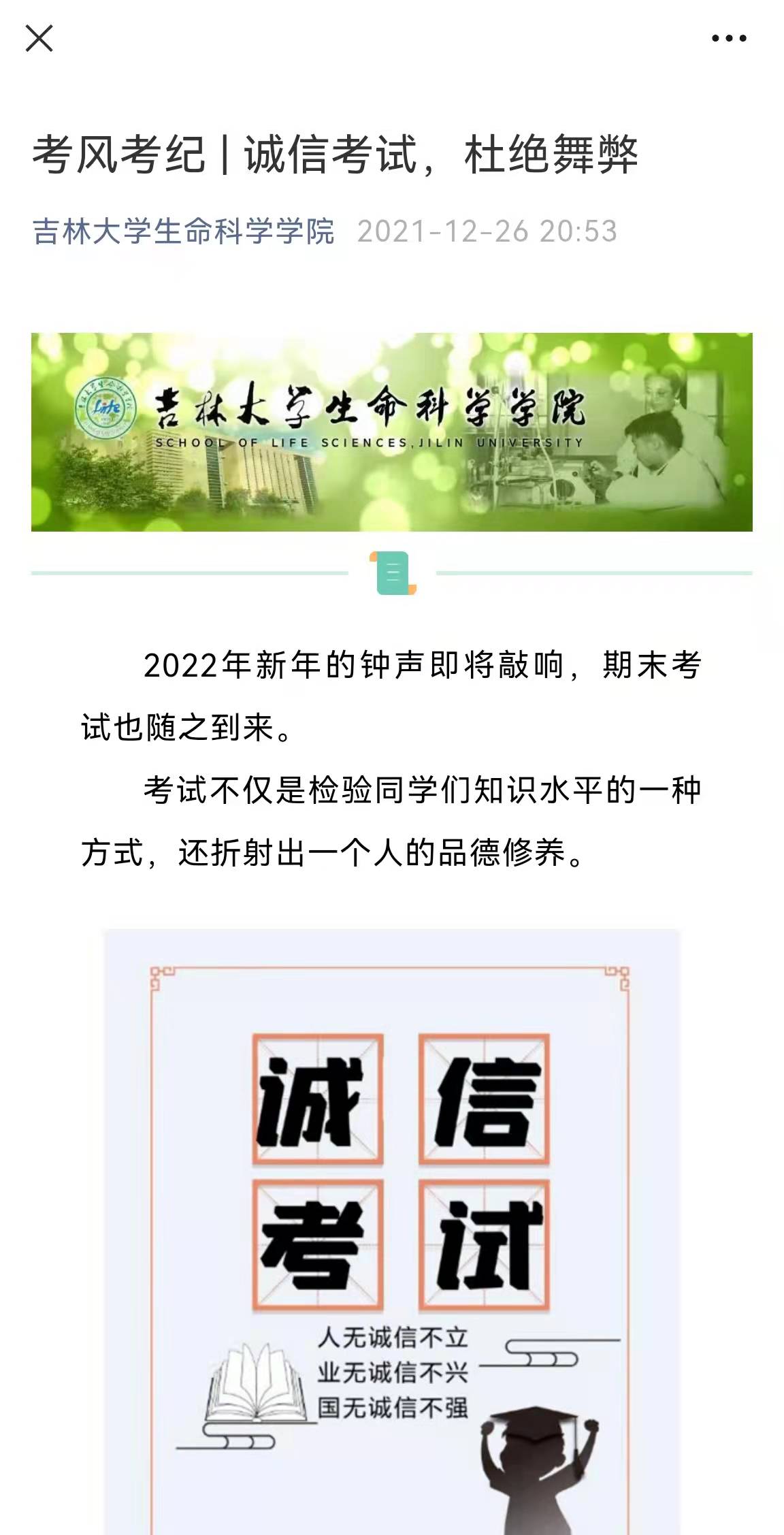 2021年12月26日,院学工办在学院公众号上发布了《考风考纪|诚信考试,杜绝舞弊》的推送,倡导优良学风与诚实诚信,并分年级召开了诚信考试教育动员会,要求全体学生严格遵守考试纪律,做到诚信应试,同时组织全体学生签订了《糖果派对-糖果派对试玩