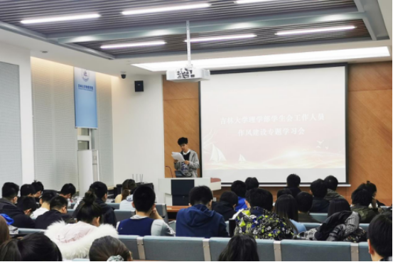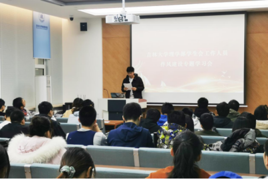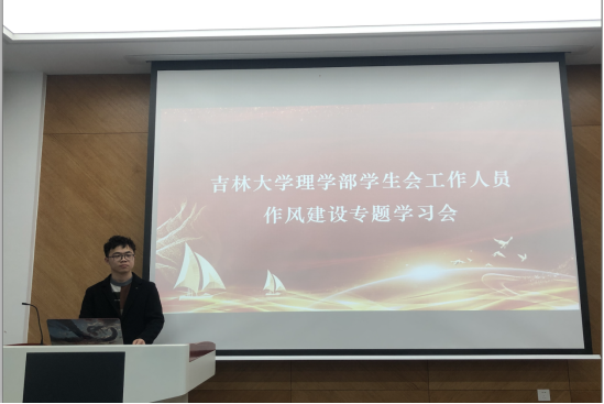 随后,物理学院学生会执行主席伊博谦同学、数学学院学生会执行主席黄存昕同学和化学学院学生会执行主席张徐纯同学,带领同学们学习了《共青团中央、全国学联印发<关于落实共青团和学联对高校学生会(研究生会)指导管理责任的若干规定>的通知》、《吉林大学学生会工作人员行为规范条例》和《学生会、研究生会干部自律公约》,强调高校学生会应当坚持正确的政治方向,聚焦服务同学的职能,坚决杜绝出现脱离同学的功利化、庸俗化等现象,要杜绝形式主义、官僚主义,共同维护组织形象,努力建设成一支胸怀理想、心系同学、品学兼优、作风扎实的工作骨干队伍。
