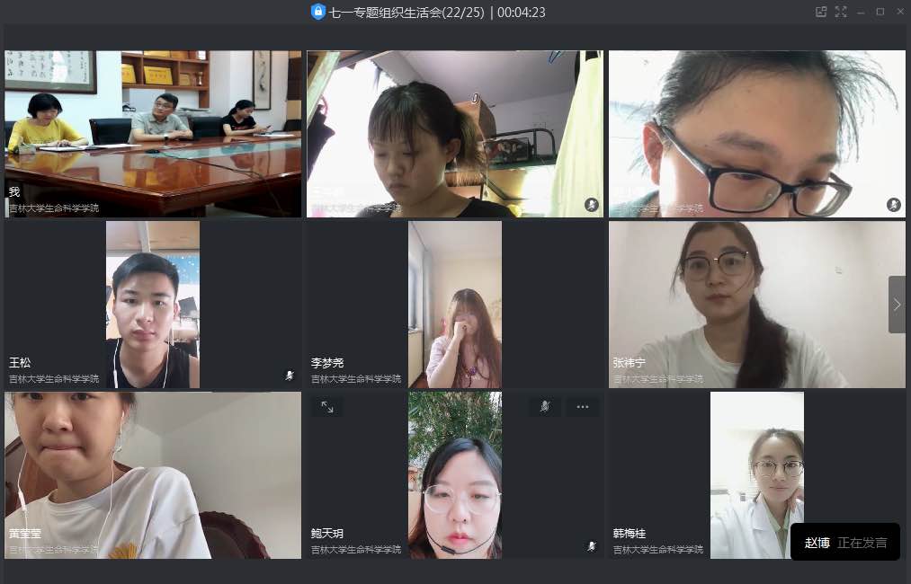 会议结束后,崔帅老师希望各位学生党员通过本次专题组织生活会,认真学习各条战线上的党员在抗击疫情中的感人事迹,充分发挥党支部的战斗堡垒作用和党员的先锋模范作用,巩固“不忘初心、牢记使命”主题教育成果。同时也对毕业生党员提出了殷切的希望,希望他们毕业后继续秉承着吉大人,“红白黄”三源色精神,在自己的工作岗位中发光发热。
