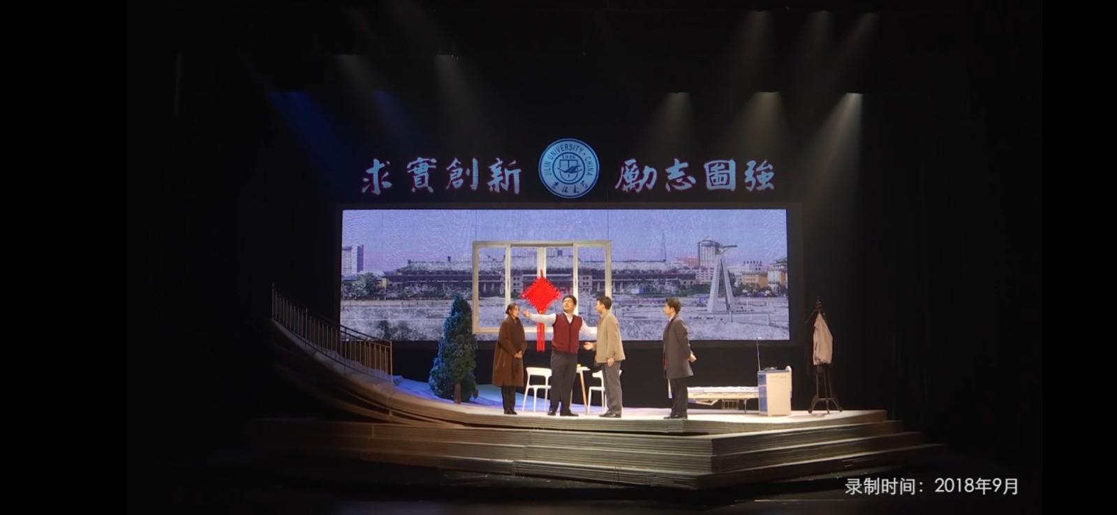 随后《黄大年》话剧以诙谐的方式展示了一个全面的黄大年老师:作为青年,高考时坚持学地质,毕业后毅然留校任教,坚守“为国家找矿”的理想;作为教师,鼓励学生多方面发展,为每一个学生认真负责;作为出国学者,选择,是为了让国家有更多的人才,也为祖国带回更多先进的知识和技术,更是选择在硕果累累时回国效力;作为父亲,在回国时留下女儿,告诉孩子做项目要有始有终,不能半途而废,要磨练意志,锻炼能力,带一身本领回国。每一次《我爱你,中国》的音乐响起,更加把这火焰般的热情,这经年不变的赤诚的爱国之心刻在了同学们的心里。
