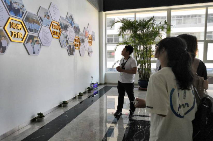 在公司总经理的带领下,实践队还参观了公司的实验室、无菌区、生产线,了解了部分药物的研发机理与生产流程,目睹了大规模的生产一条龙,从灭菌到装瓶上盖,繁杂又详尽,一层又一层的无菌操作,谨慎又专业。