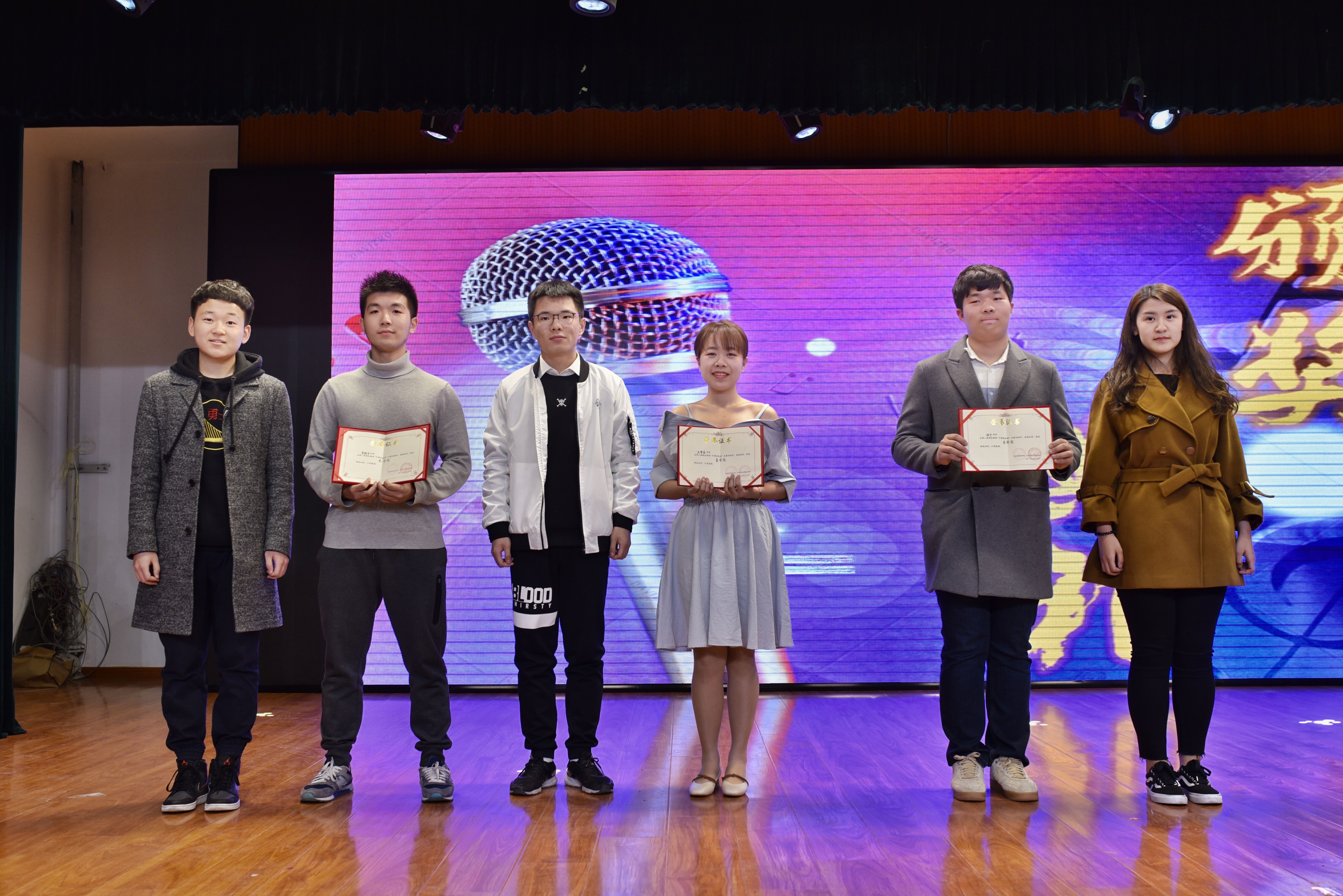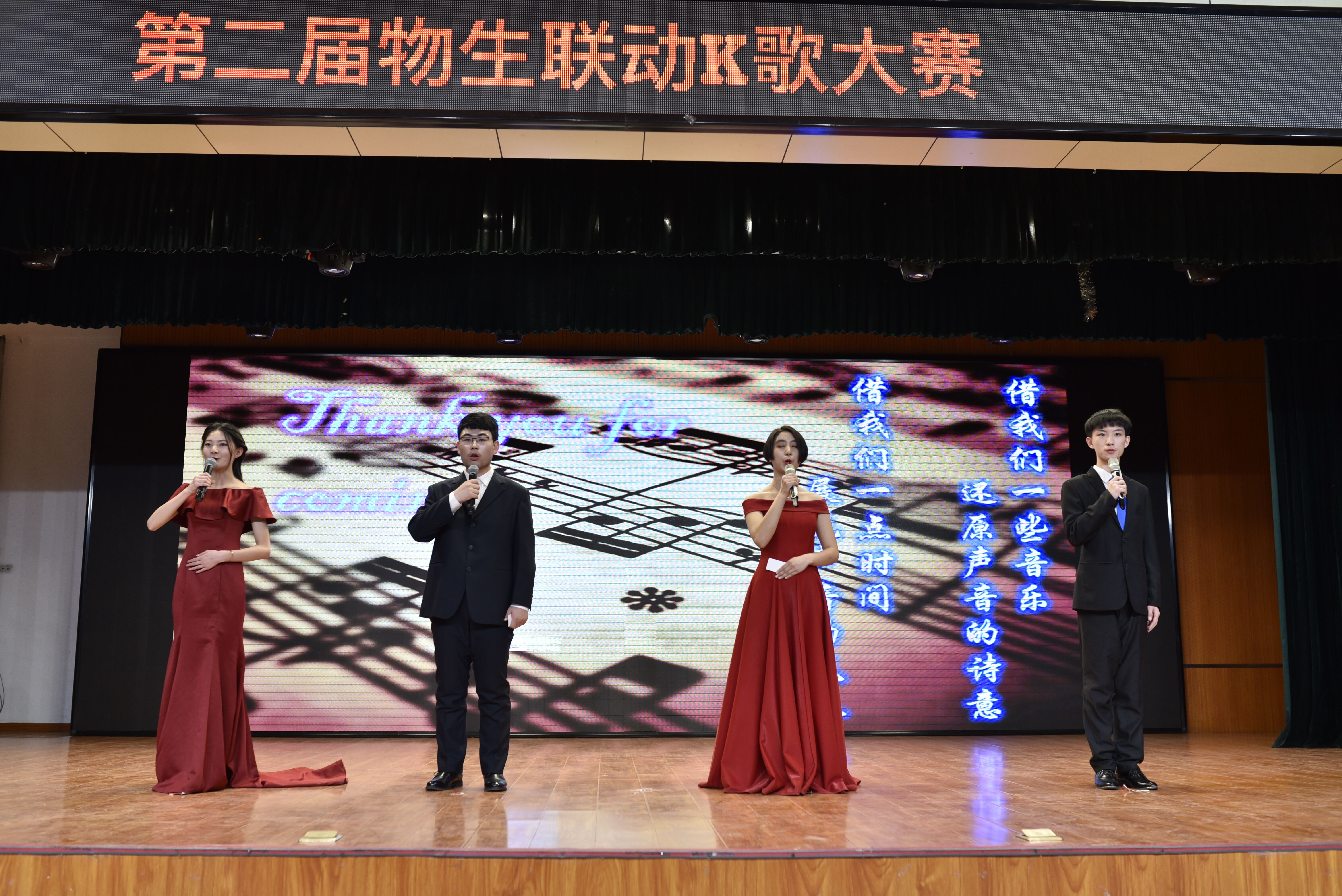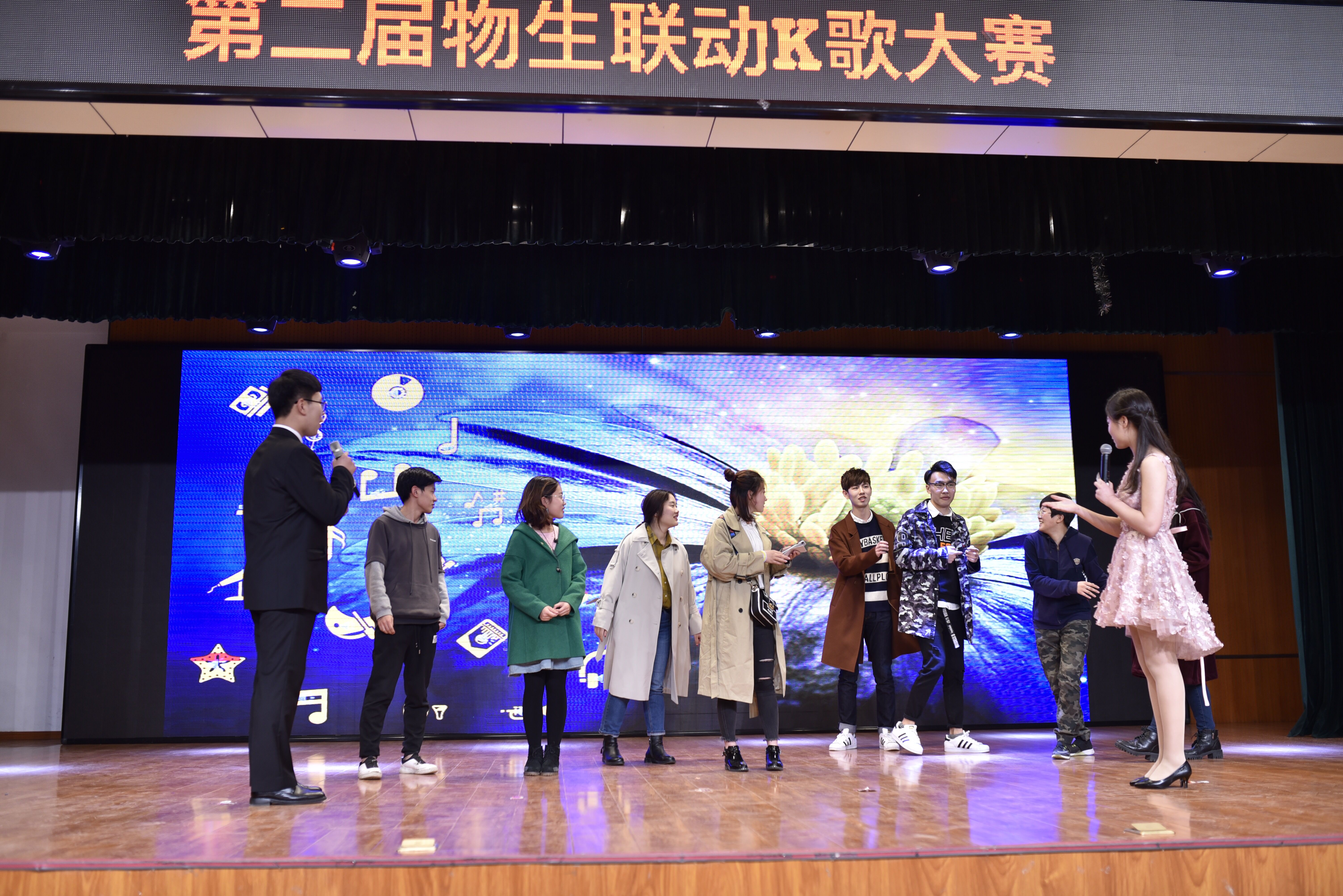 与物理学院两院联办的“物生联动K歌大赛”在田家炳小礼堂举行,近百名师生到场观看演出,座无虚席。我院团委副书记于佳宁以及多名学生干部代表出席活动。