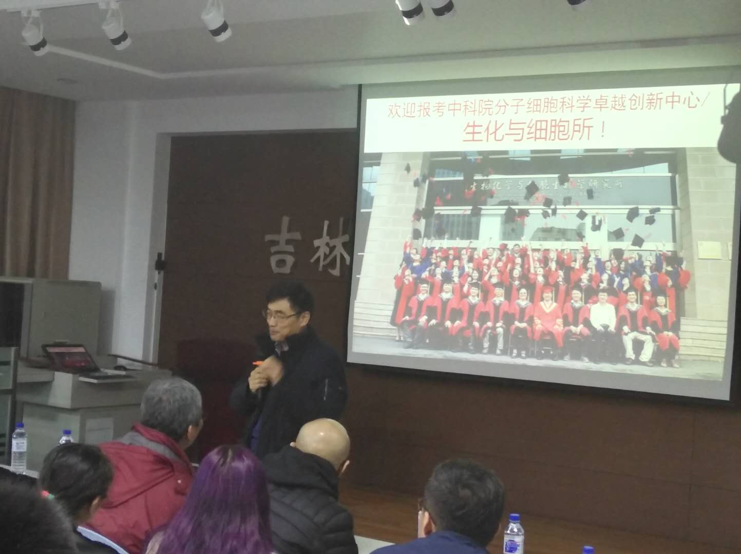 2018年4月13日18:00,中国科学院上海生命科学生物化学与细胞生物学研究所徐国良院士、张雷研究员和侯法建研究员在吉林大学生命科学楼107室为学院本科生做了学术报告,陪同出席本次活动的有糖果派对