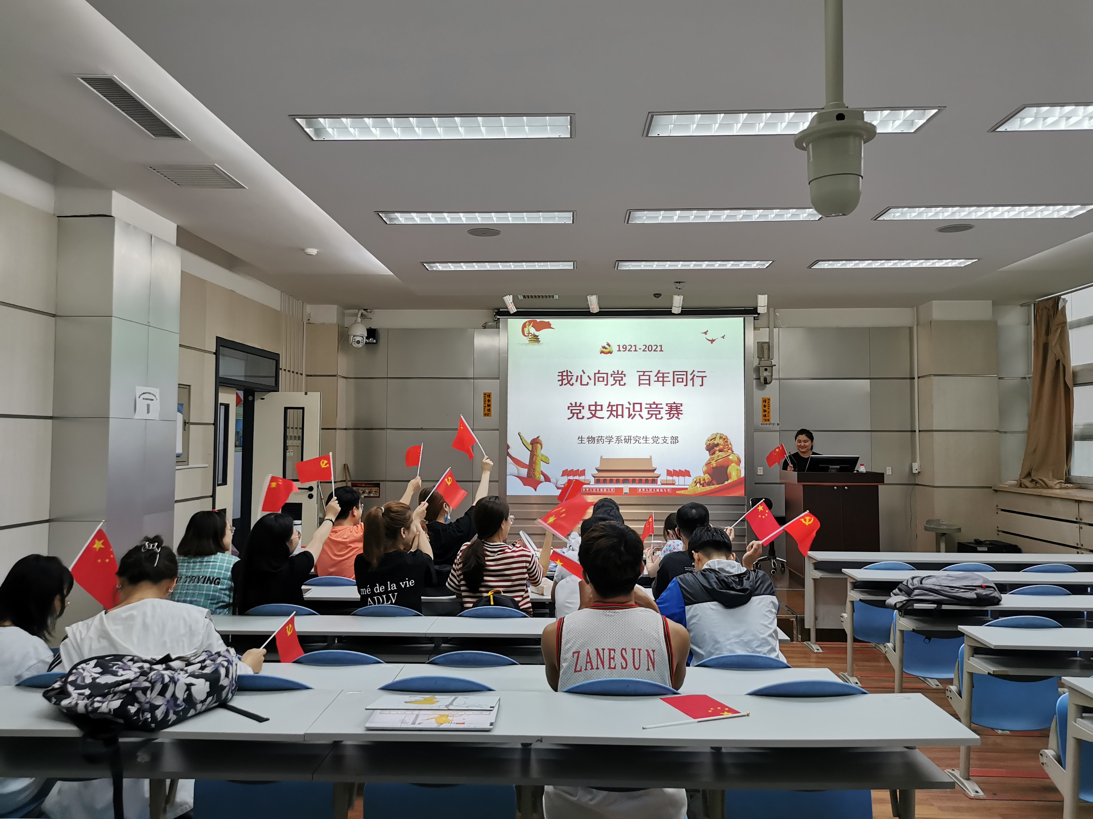 为庆祝中国共产党成立100周年,持续深入推动党史学习教育,引导支部党员学党史、听党话、感党恩、跟党走,生物药学系研究生党支部于2021年7月7日在唐敖庆楼C258举办“我心向党,百年同行”——党史知识竞赛。