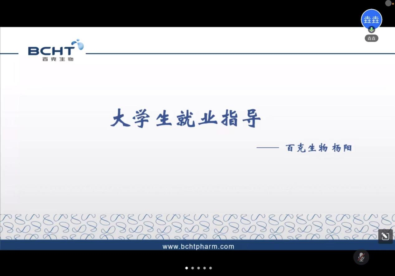 组织开展了“疫”路同行 “职”为有你 “积极就业向未来”百克生物线上宣讲会暨就业指导讲座。活动邀请百克生物人力资源部副经理杨阳线上讲座,糖果派对